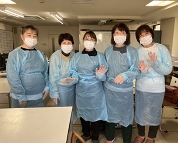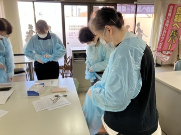 感染防護服の着脱の研修風景