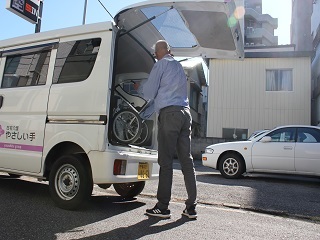 お客様本人やそのご家族のご自宅にはワゴンタイプの車で向かいます。訪問したら、お客様の身体状況・生活環境をヒアリング。「階段がつらい」という方には手すりを。「トイレの立ち座りがきつい」という方には昇降便座を。最適な商品を選定のうえ、ご提案します。納品の際は丁寧に商品を説明。使い方や、注意事項なども一緒に確認しましょう。